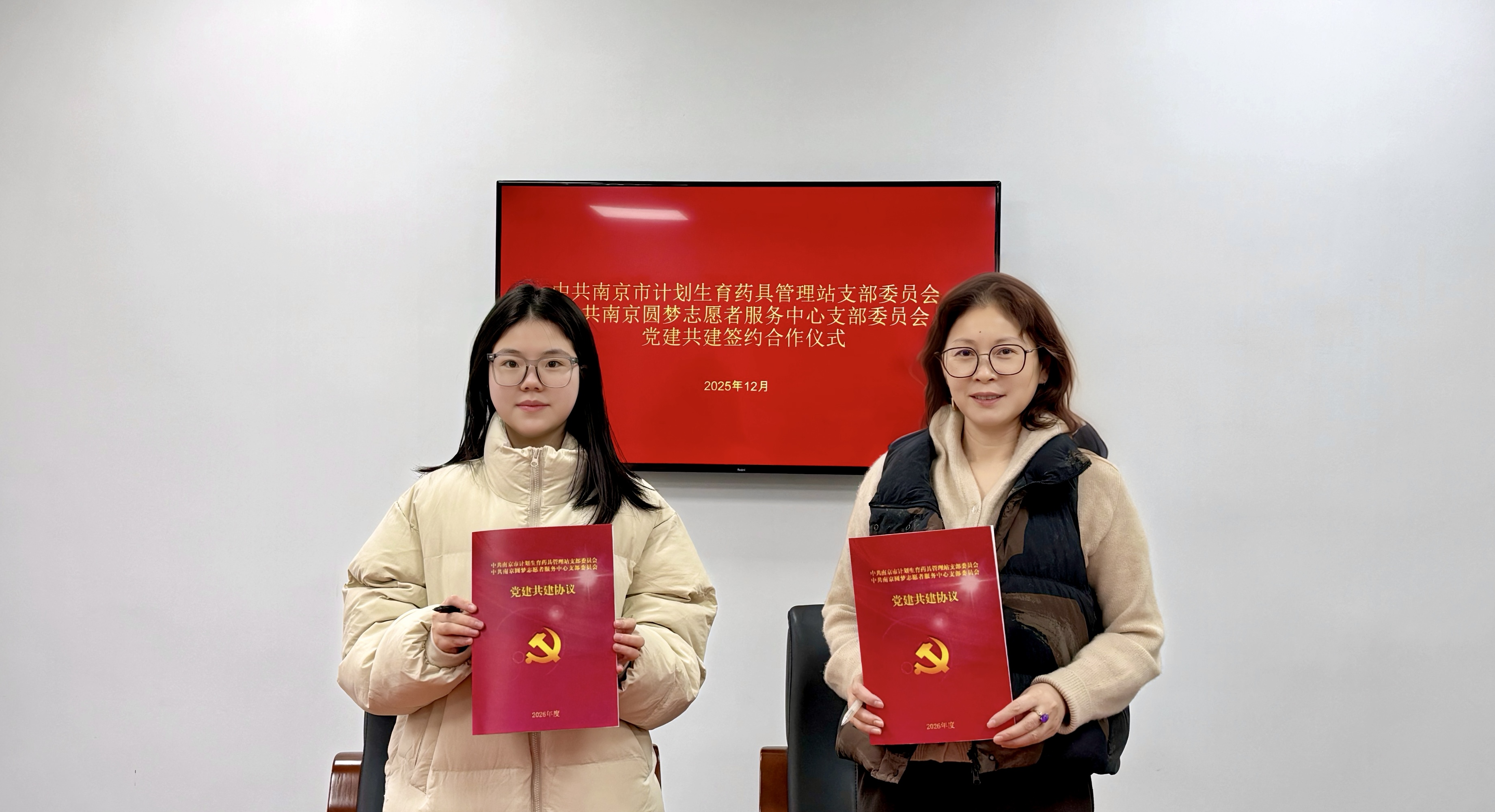 为深入贯彻落实习近平新时代中国特色社会主义思想,全面对标新时代党的建设总要求,创新党建工作载体,实现 “共建组织、共抓队伍、共享资源、共谋发展” 的党建工作新格局,努力打造特色党建服务品牌,充分发挥党员在社会组织和志愿服务中的先锋模范作用,为高质量打造一流社会组织注入红色动能。 2025年12月24日,中共南京市计划生育药具管理站支部委员会与中共南京圆梦志愿者服务中心支部委员会党建共建签约合作仪式顺利举行,现场签署共建协议,标志着两家单位在党建引领下的合作迈入新阶段。 南京市计划生育药具管理站党支部书记、站长穆芳,南京市计划生育药具管理站办公室主任昌盛,南京圆梦志愿者服务中心党支部书记吴佳怡,南京圆梦志愿者服务中心工会主席束弘博及党员代表出席本次活动。 此次党建共建签约,是双方深化党建与业务融合的重要举措。南京市计划生育药具管理站与南京圆梦志愿者服务中心将以党建共建为纽带,整合双方资源优势,围绕计划生育药具服务、志愿服务开展、民生关怀等领域开展深度合作,通过联合开展主题党日活动、志愿服务项目、便民惠民服务等形式,促进青春健康知识普及,把党建优势转化为服务群众的实际效能,共同推动公益服务与民生保障工作提质增效。 圆梦公益将以此次党建共建为契机,双方定期交流党组织建设经验,进一步加强基层党组织建设,充分发挥基层党组织的战斗堡垒作用和党员的先锋模范作用,实现党组织优势互补,共同研究解决党建工作中遇到的问题。互相邀请参加对方党组织的“三会一课”、主题党日、组织生活会等活动,促进党组织生活规范化、制度化。常态化开展党员学习交流活动,分享党员教育管理的好经验、好做法,促进党员队伍共建。积极组织党员和党员志愿者共同参与青春健康相关志愿服务、业务培训、社区治理等活动,提升党员的综合素质和业务能力。 未来,圆梦公益将切实把党建共建成果转化为服务群众的具体行动,始终把党的领导贯穿机构高质量发展各方面,进一步统一思想、凝聚共识、真抓实干、奋勇争先,锚定建设一流社会组织的目标,以高质量党建引领机构高质量发展。